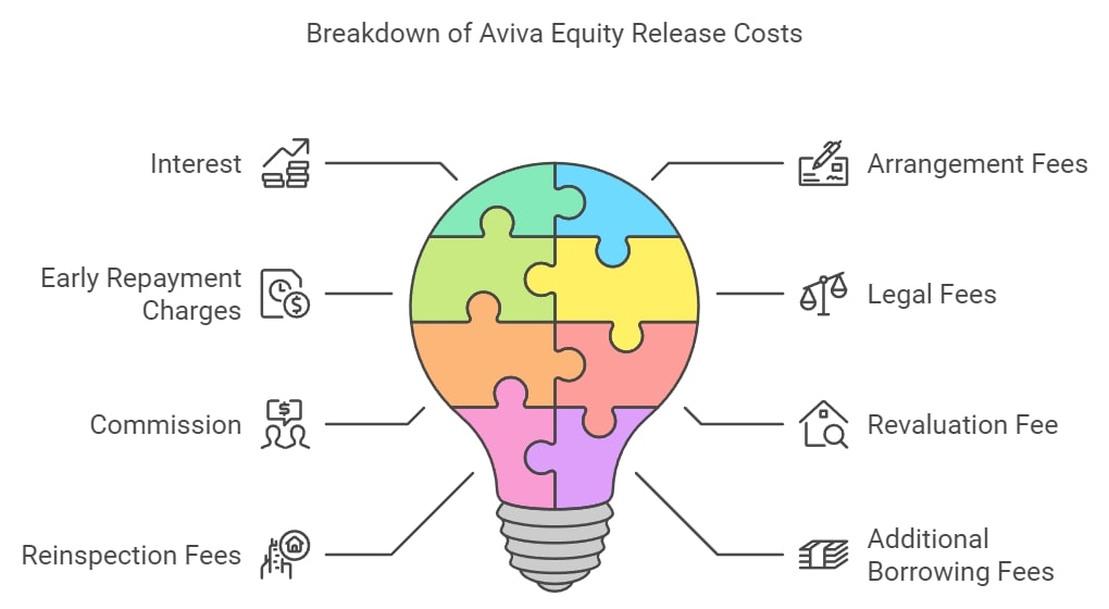 The costs with Aviva equity release include initial advice fees, valuation charges, and interest rates, with generally positive customer experiences reported.
