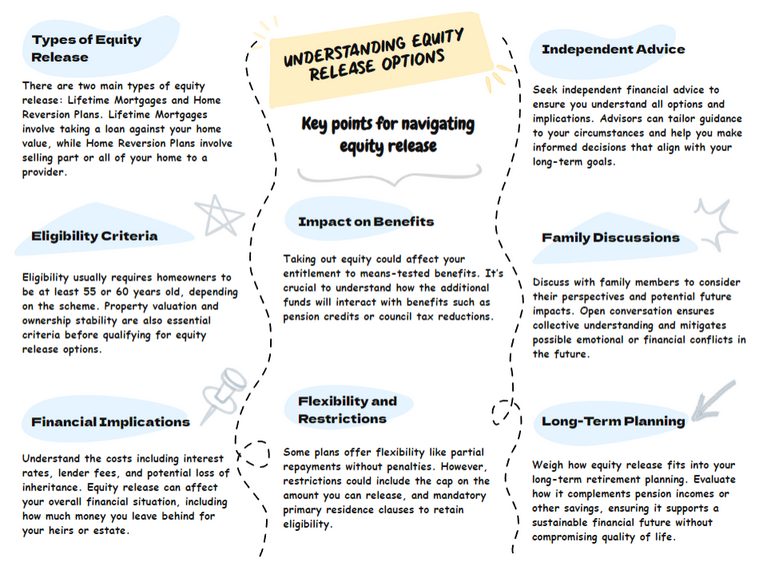 While equity release can provide additional income or funds for various purposes, it's crucial to carefully consider the implications.