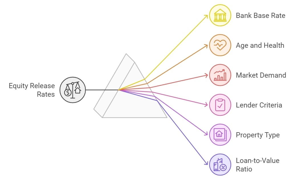Factors influencing equity release interest rates include the borrower’s age, property value, loan-to-value ratio, market conditions, and the chosen plan type; to secure the best rate, compare providers, opt for flexible plans, and seek advice from a qualified financial adviser.