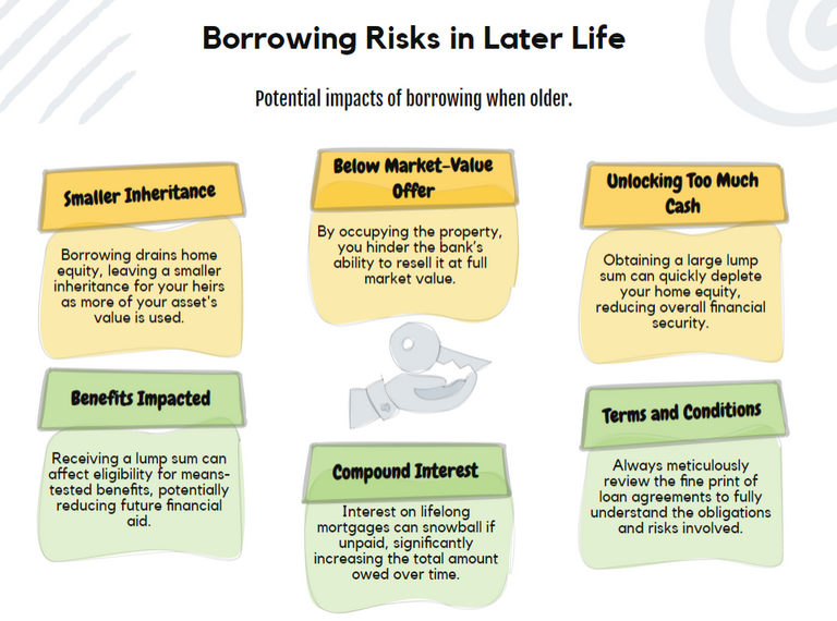 The risks of borrowing in later life include the fact that you will leave a smaller inheritance for your heirs.