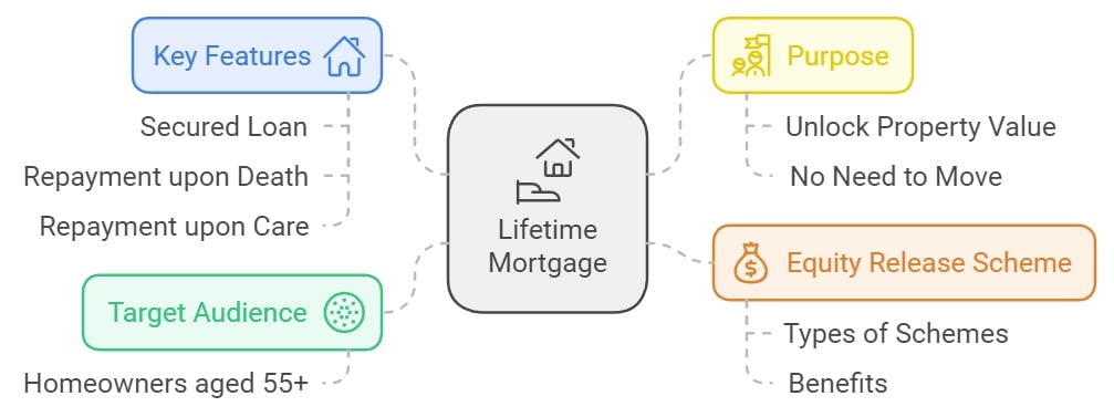 A lifetime mortgage is a loan secured against your home, repaid from the property's sale when you pass away or move into long-term care.