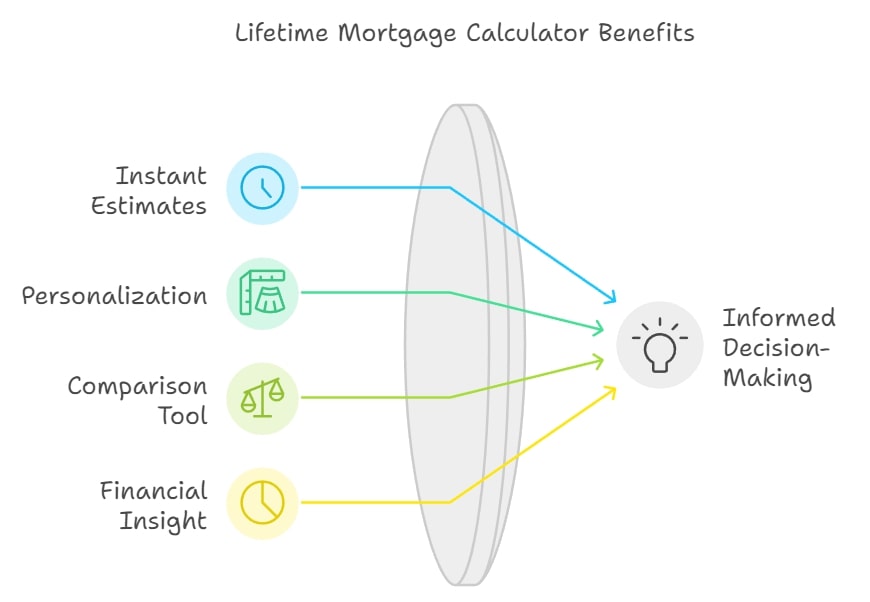 The benefits of using a lifetime mortgage calculator include financial insights and immediate estimates.