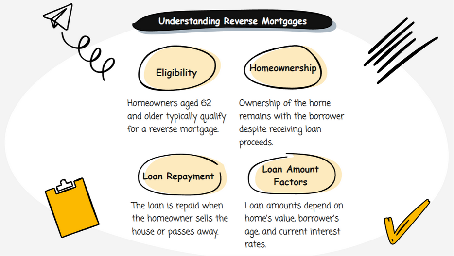 A reverse mortgage, also known as a lifetime mortgage in the UK, is a loan available to homeowners aged 55 or older, allowing them to convert a part of their home equity into tax-free cash.