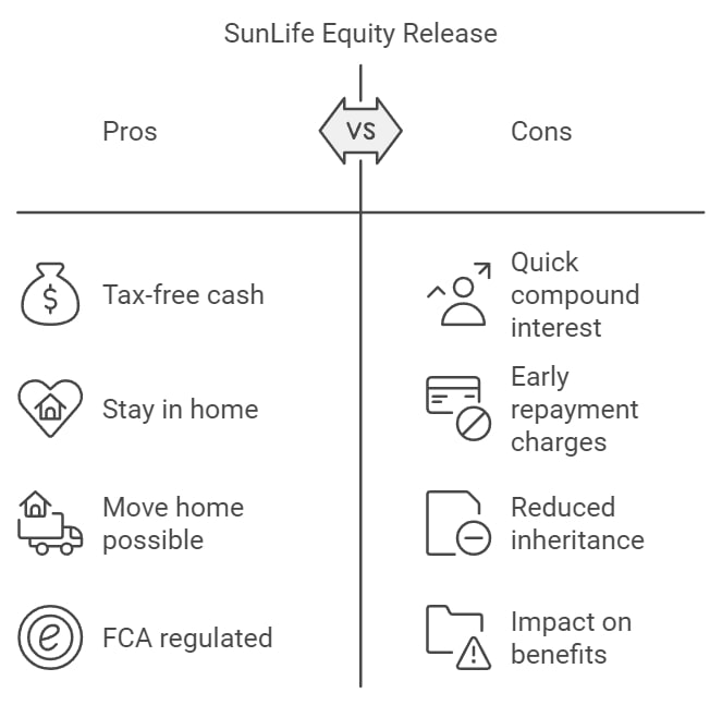 The pros of SunLife equity release include receiving tax-free cash and the assurance that you're dealing with a regulated and accredited company.