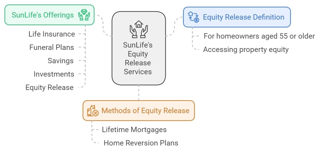 SunLife is a UK-based financial services company that offers a range of products and services in equity release, including life insurance, funeral plans, savings, investments, and equity release.1